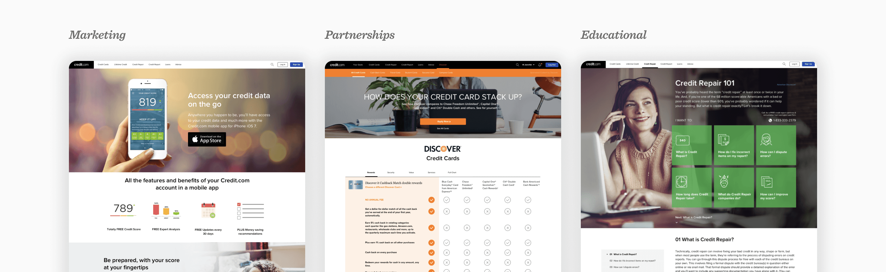 Select digital partner and design lead for the entire credit.com experience, including web, product, app and marketing.